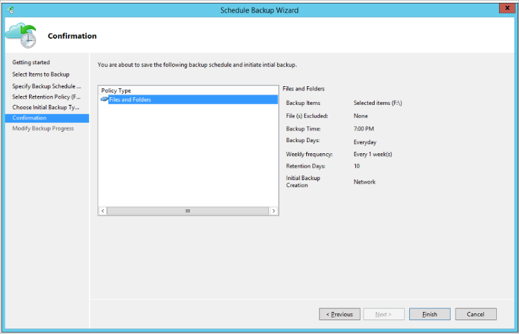 在“确认”页上复查设置,然后选择“备份”。