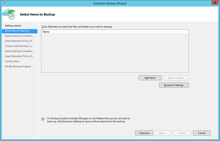 在“选择要备份的项”页上,选择“下一步”。