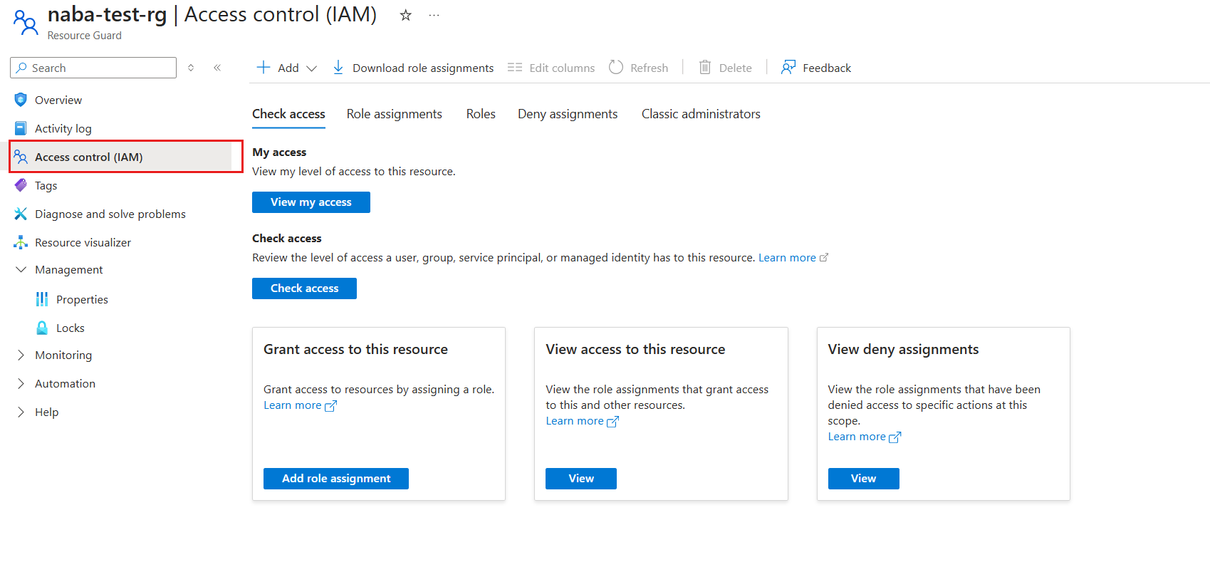 在上面创建的 Resource Guard 中,转到 “访问控制”(IAM) 窗格,然后转到 “添加角色分配”。