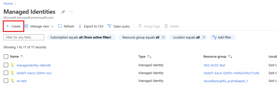 还可以新建一个用于快照备份和还原的托管标识。 若要创建托管标识并将其分配到具有SAP HANA数据库的 VM,请执行以下步骤: