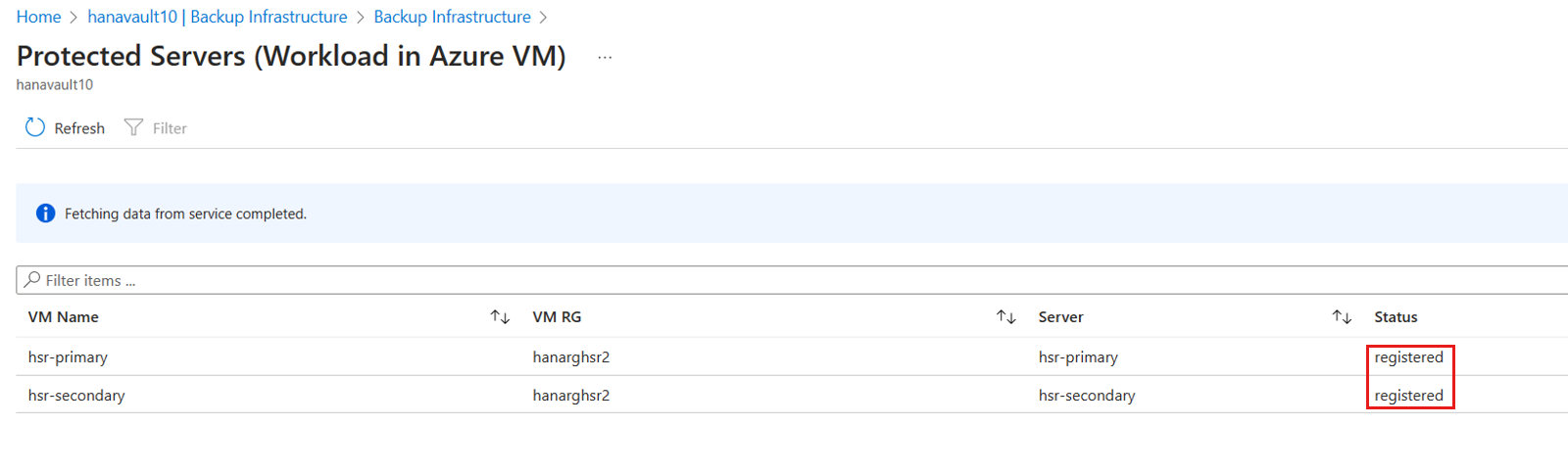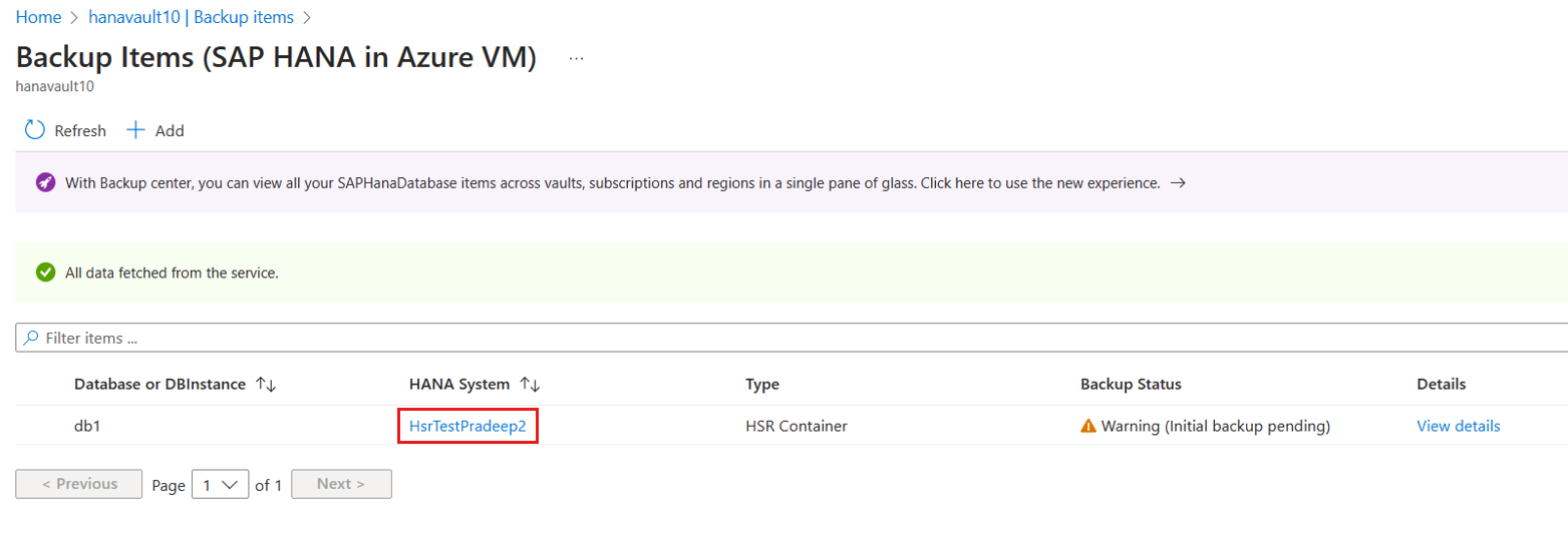 1. 转到 Recovery services vault>Backup Items>SAP HANA in Azure VM