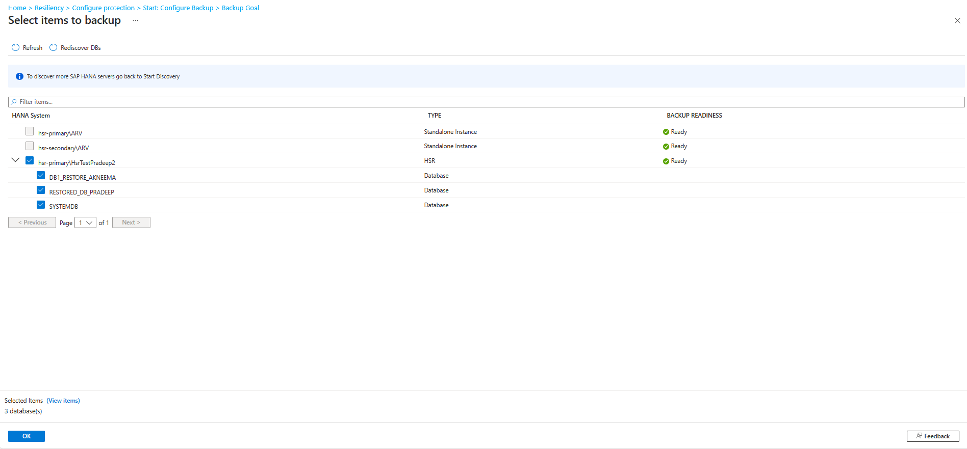 还可以在 Azure Backup 中将 Azure VM(独立虚拟机)上的 SAP HANA 数据库保护切换为 HSR。 Learn more.