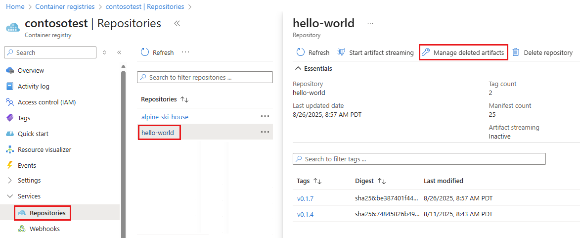 - 详细了解 Azure 容器注册表中用于删除映像和存储库的选项。