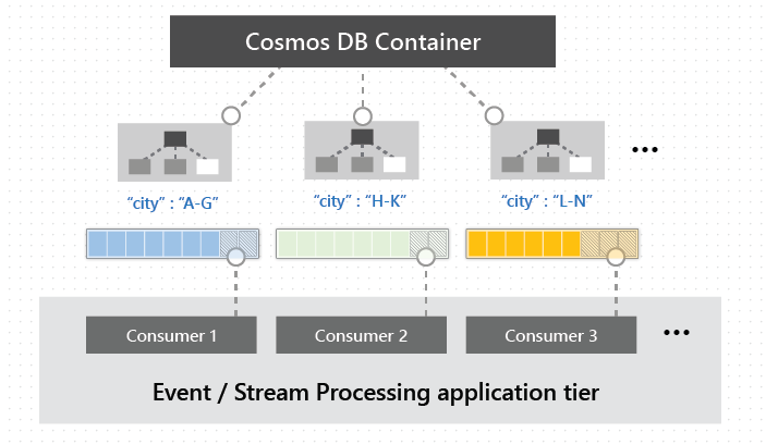 可以对 Azure Cosmos DB 容器的分区键范围并行进行更改。 多个使用者可以使用此功能并行处理大型容器中发生的更改。