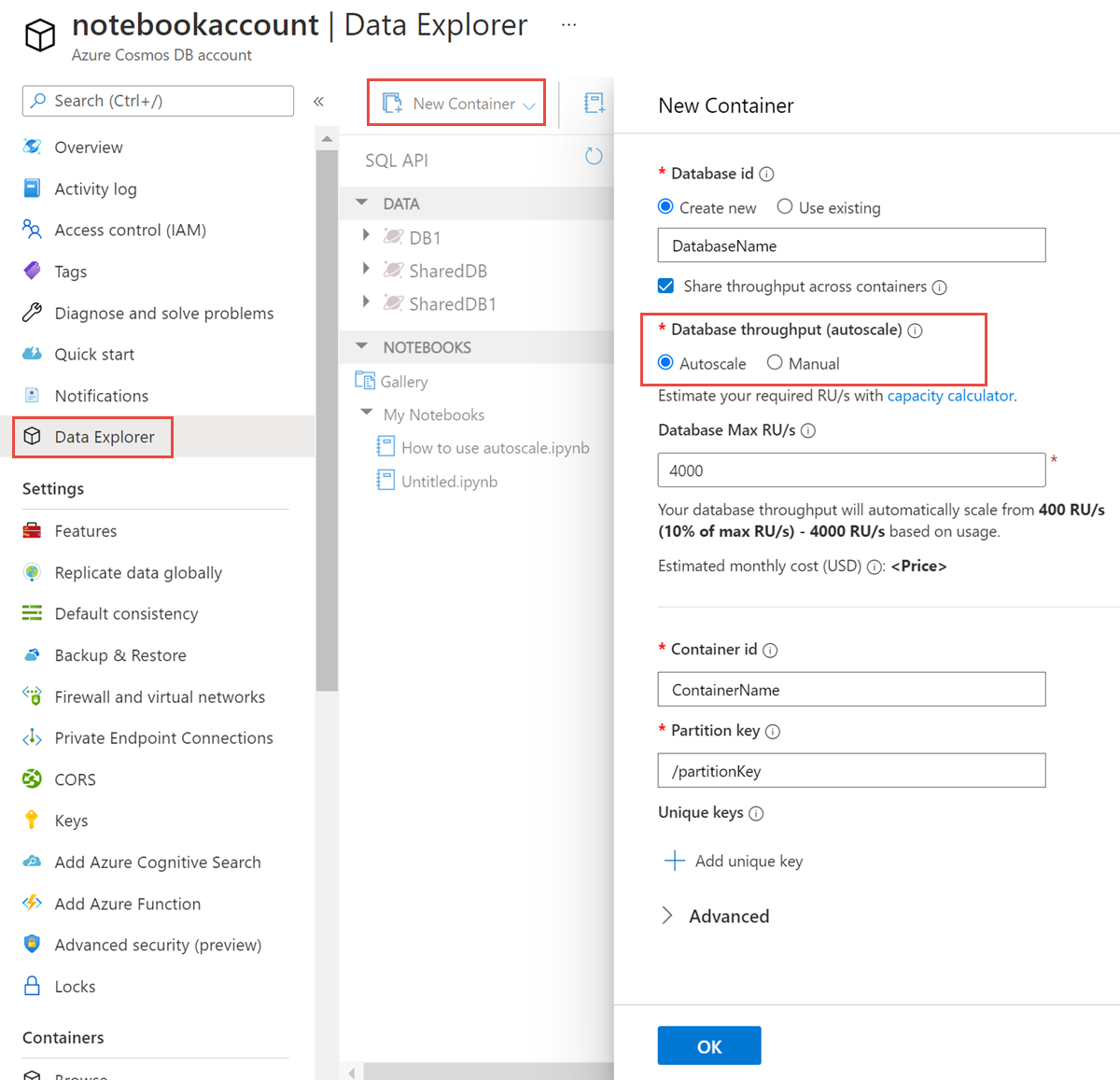 throughput_properties = ThroughputProperties(auto_scale_max_throughput=5000) #Set autoscale max RU/s