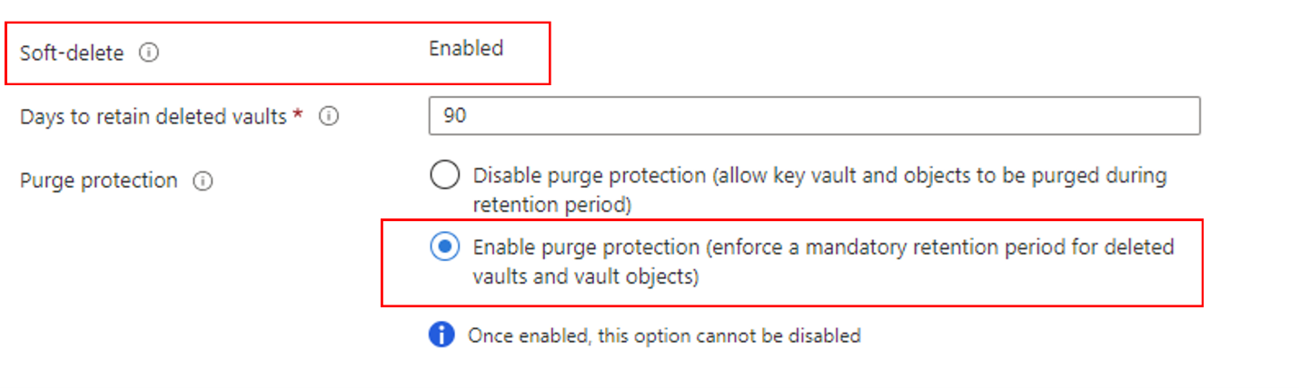 - 如果创建新的Azure Key Vault实例,请在创建过程中启用这些属性:
