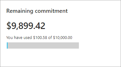 例子: Contoso 在 5 月承诺 50,000 美元的 MACC 投资。 今年6月,他们购买了Azure人民币1万美元的预付款。 此次购买减少了他们的 MACC 承诺,剩余余额为 40,000 美元。 在 6 月,Contoso 消耗了 10,000 美元的Azure符合预付款条件的服务。 这些服务费由其Azure预付款支付,不会减去其 MACC 承诺。 完全使用Azure预付款后,所有Azure服务消耗和其他符合条件的购买都会减去其 MACC 承诺。