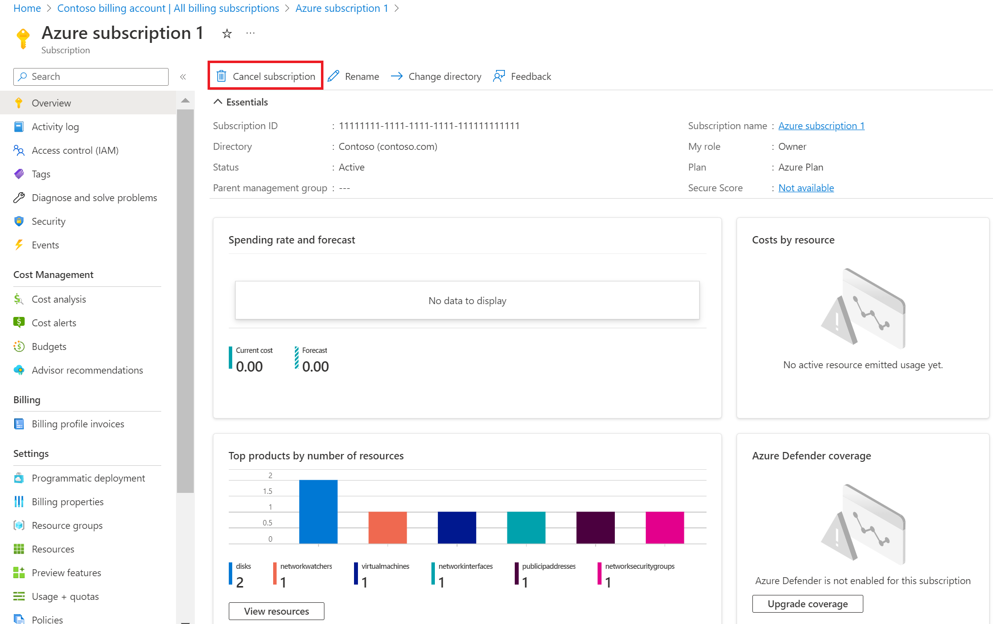 如果你不是通过组织获取的 Microsoft Entra 帐户,则可以取消 Azure 订阅后再将其删除,然后从该帐户中删除信用卡。 虽然该操作不会删除帐户,但会使其无法使用。 如果关联的 Microsoft 帐户当前未用于任何其他目的,则还可以进一步操作并将其删除。