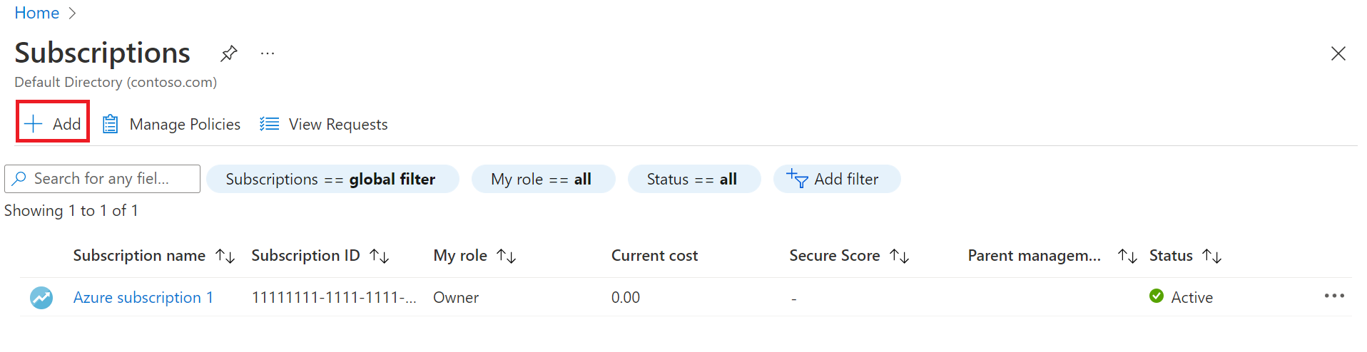 - 导航到“订阅”,然后选择“添加”。