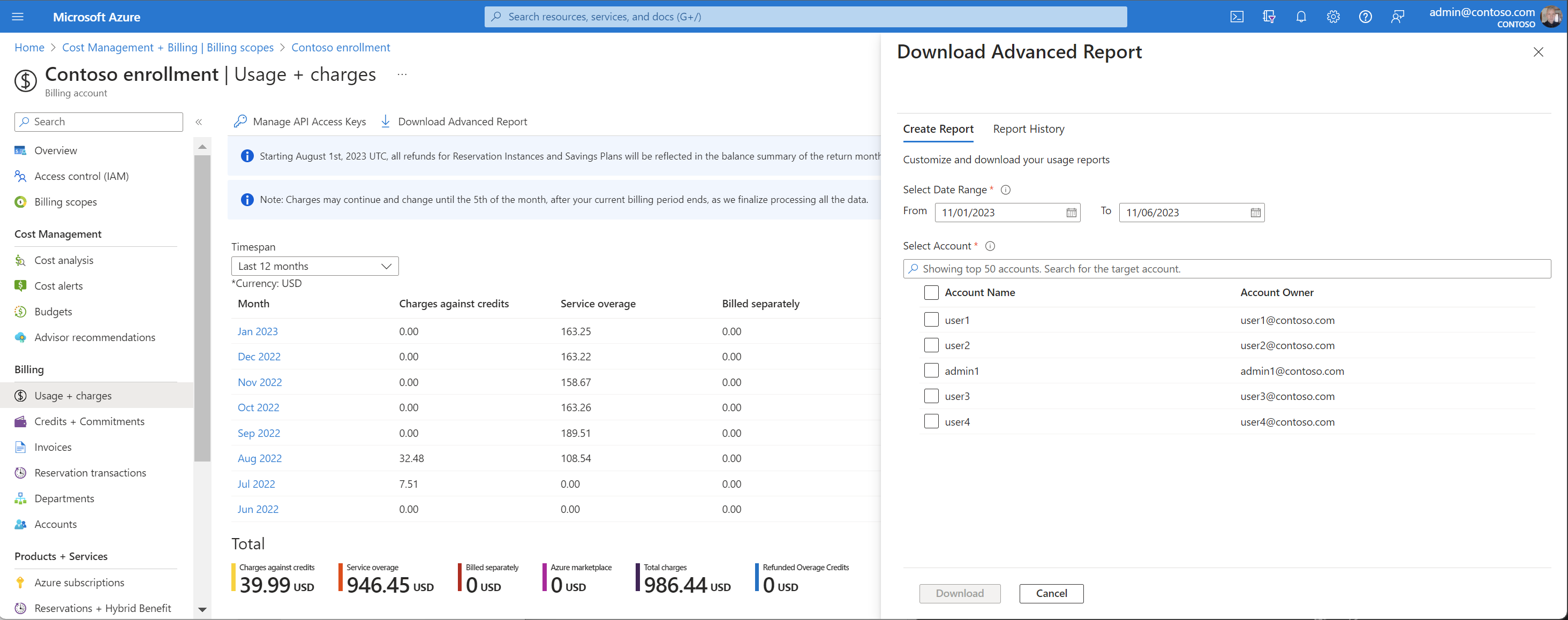 - 对于 EA 管理员,从导航菜单中选择“计费范围”,然后选择要使用的计费帐户。