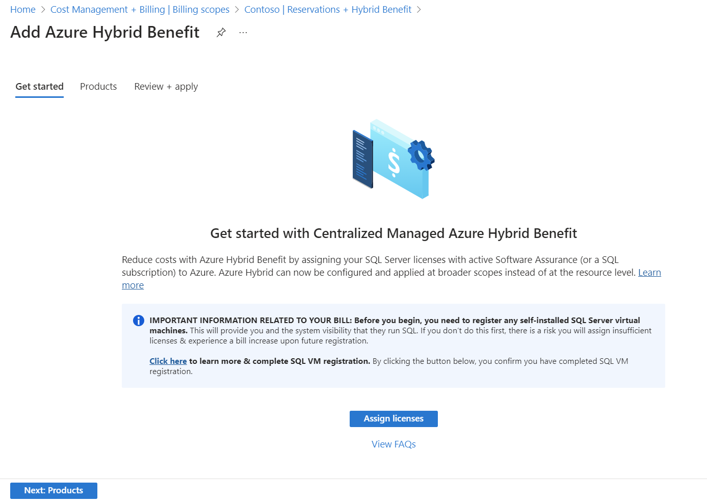 - 请查看集中管理的 Azure 混合权益常见问题解答。