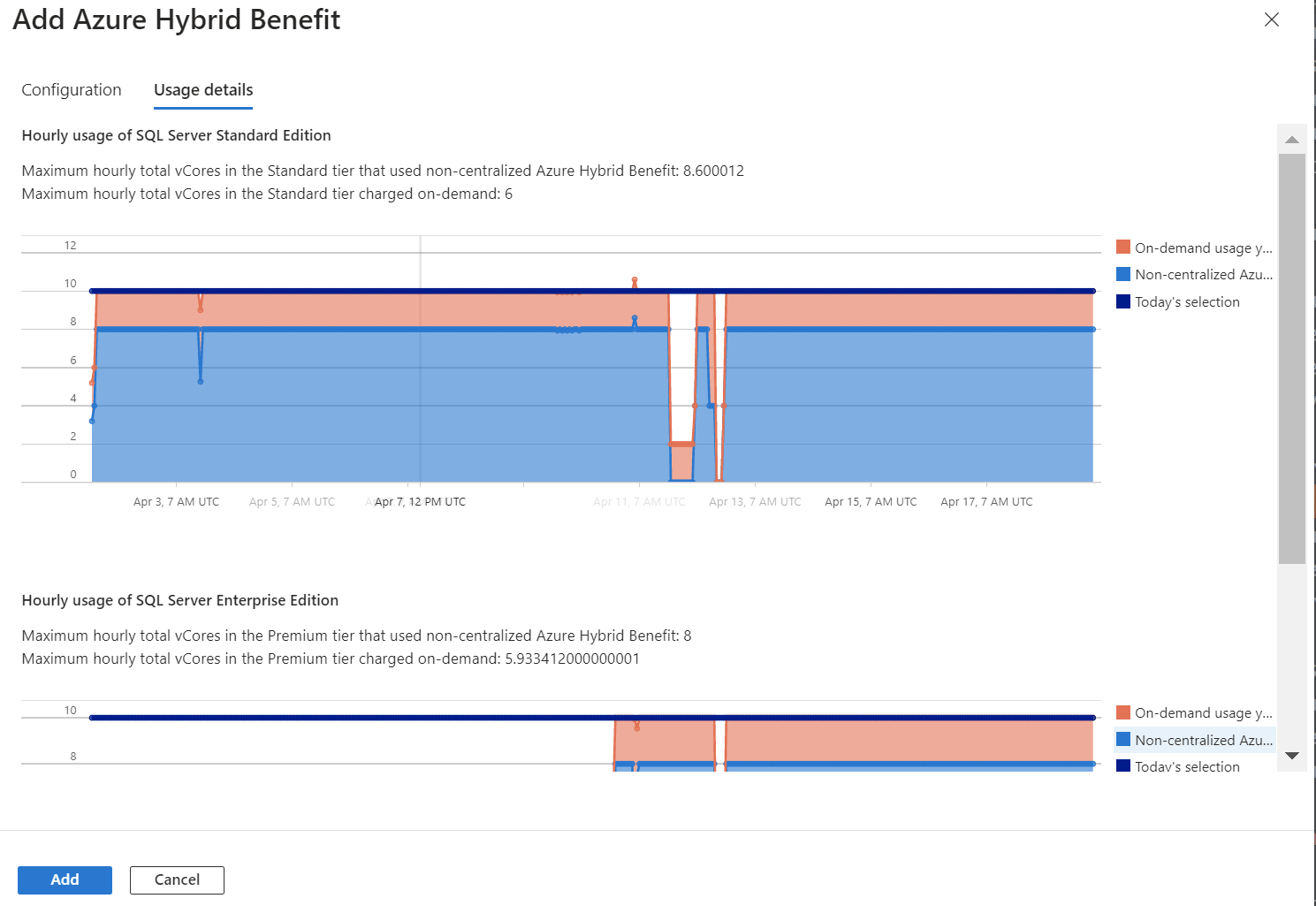 - 如果其他资源使用所有许可证,则为混合权益配置的特定资源可能无法获得折扣。 但是,最大折扣根据许可证计数应用于范围。 有关如何应用折扣的详细信息,请参阅 什么是 SQL Server 的集中管理的 Azure 混合权益?