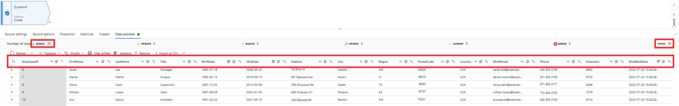 ALTER TABLET-SQL 语句将新的“PersonalEmail”列添加到源表,如以下示例所示。