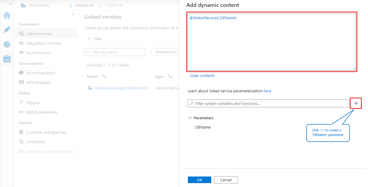 还可以通过在要参数化的属性旁边选择 “添加动态内容” ,在链接服务中使用参数。