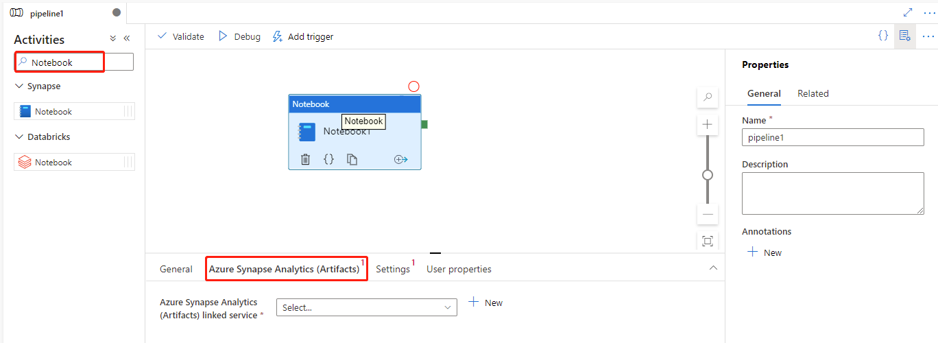 - 在画布上选择新的“Notebook”活动(如果尚未选择)。