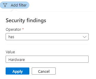 “安全检查结果”和“标记”筛选器仅接受单个值。 若要使用多个筛选器,请使用“添加筛选器”。