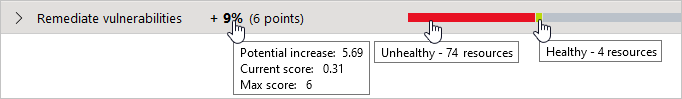| 潜在分数增加 | 控制中可提升的剩余分值。 如果纠正此控制项中的所有建议,分数增加 4%。 潜在分数增加=[每个资源的分数]*[运行不正常的资源数] |