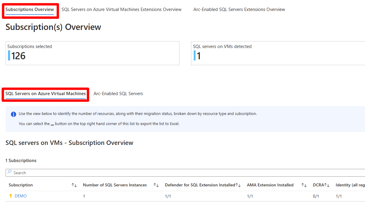 - 支持 Arc 的 SQL Server - 显示包含支持 Azure Arc 的虚拟机的订阅。