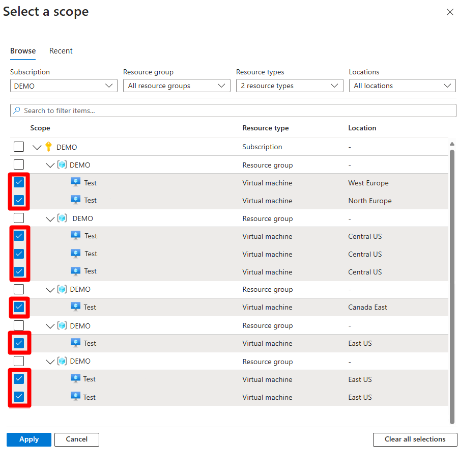 在“资源类型”下拉列表中,选择“计算机 - Azure Arc”,并根据部署选择“虚拟机”。
