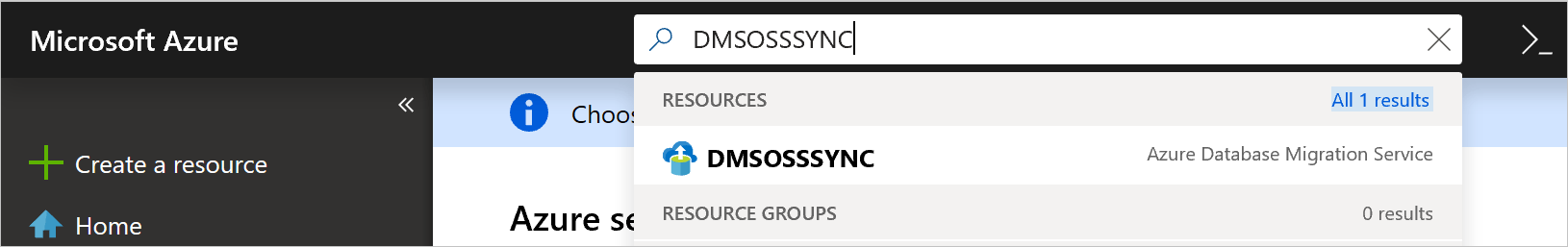 或者,可以通过 Azure 门户中的搜索窗格发现 Azure 数据库迁移服务实例。