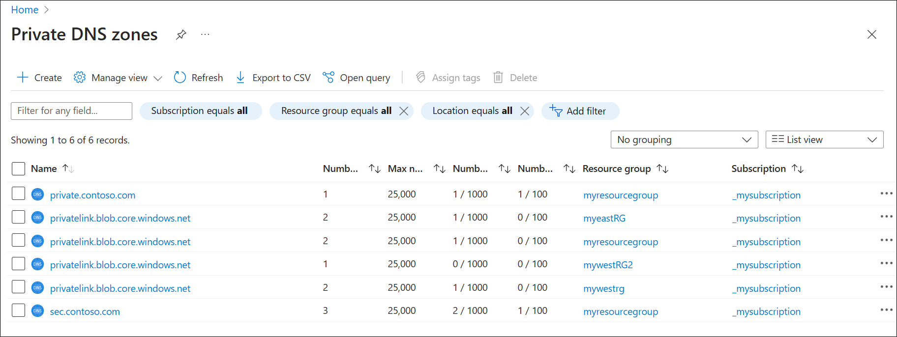 同一资源组中的存储帐户在同一专用 DNS 区域中具有资源记录。