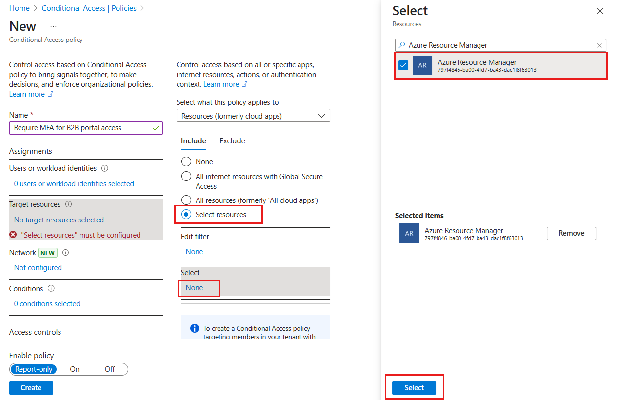 - 创建一个条件访问策略,它要求用户通过 MFA 才可访问你环境中的云应用。 在本教程中,我们将使用 Azure 资源管理器应用来说明该过程。