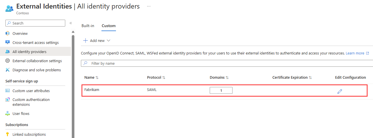 浏览到 Entra ID>外部标识>所有标识提供者。
