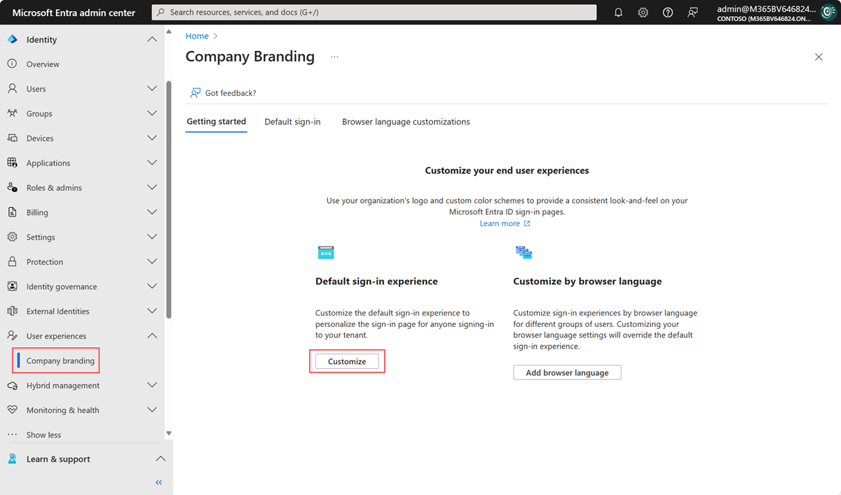 以 Organizational Branding Administrator 身份登录到 Microsoft Entra 管理中心。