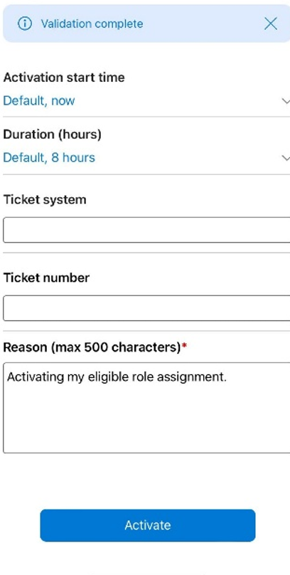 使用 Microsoft Entra Privileged Identity Management (PIM),允许 Azure 资源的合格角色成员计划将来日期和时间的激活。 他们还可以在最大值(由管理员配置)内选择特定的激活持续时间。