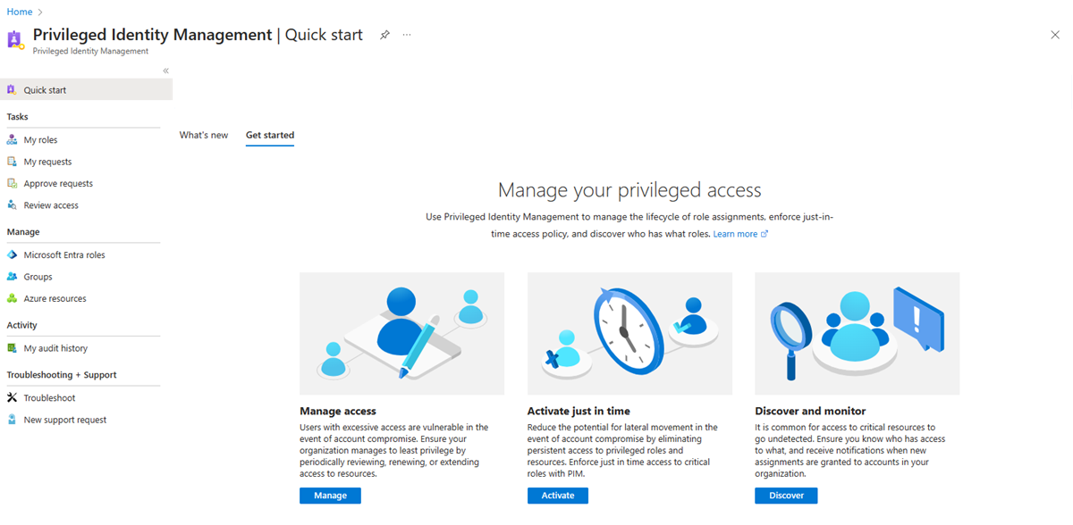 通过将 PIM 功能集成到不同的 Azure 门户边栏选项卡中,此新功能使你可以更轻松地获得查看或编辑订阅和资源的临时访问权限。