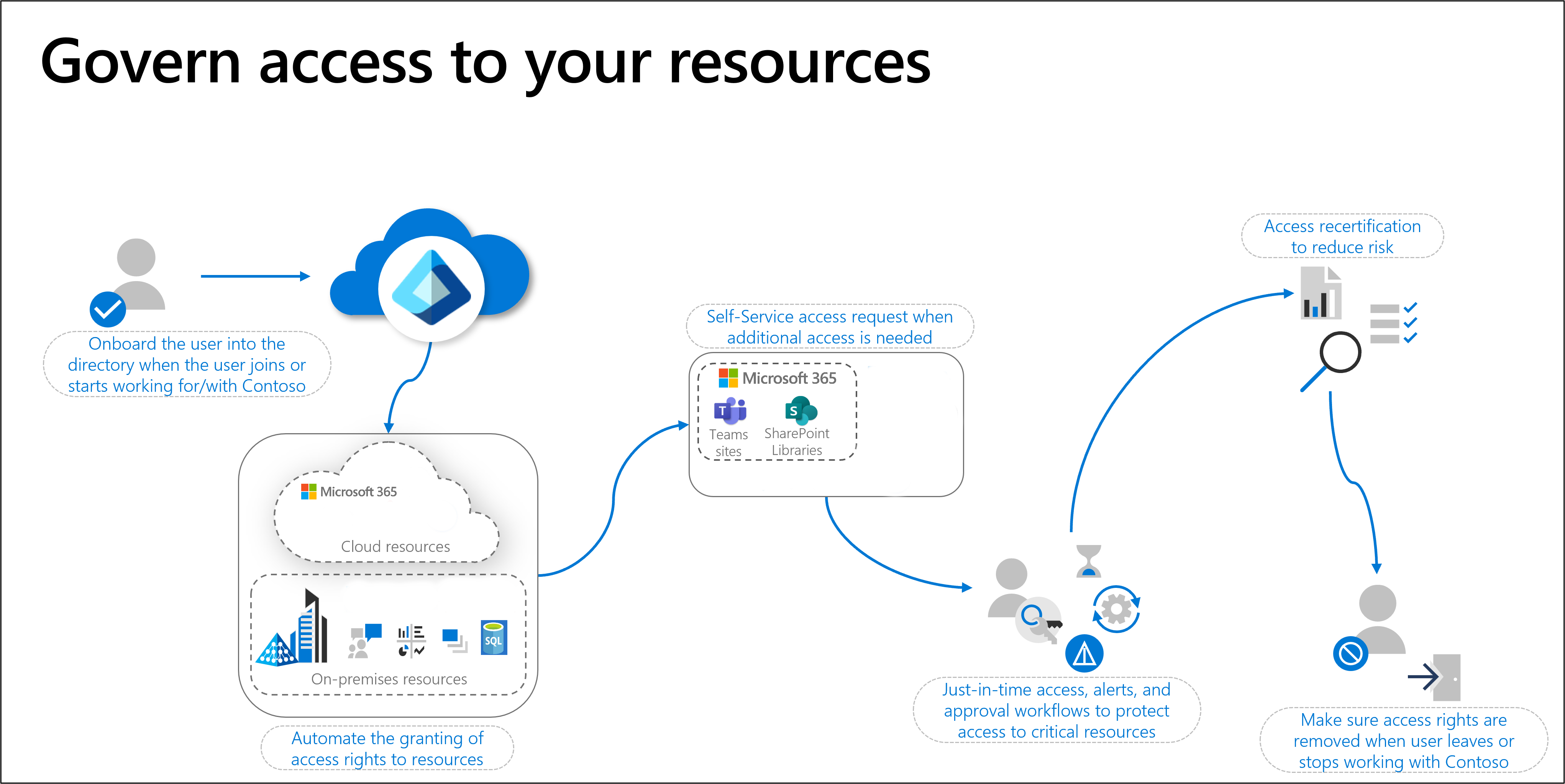 查看使用 Microsoft Entra ID 治理来管理员工和来宾生命周期,重点介绍外部标识。 来宾用户、供应商和其他外部用户也需要此处介绍的过程,以便他们能够协作或有权访问资源。 本文档介绍可执行的操作来发现治理过程。