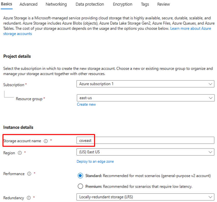 步骤 1:创建 Azure 存储帐户以托管 CSV 文件