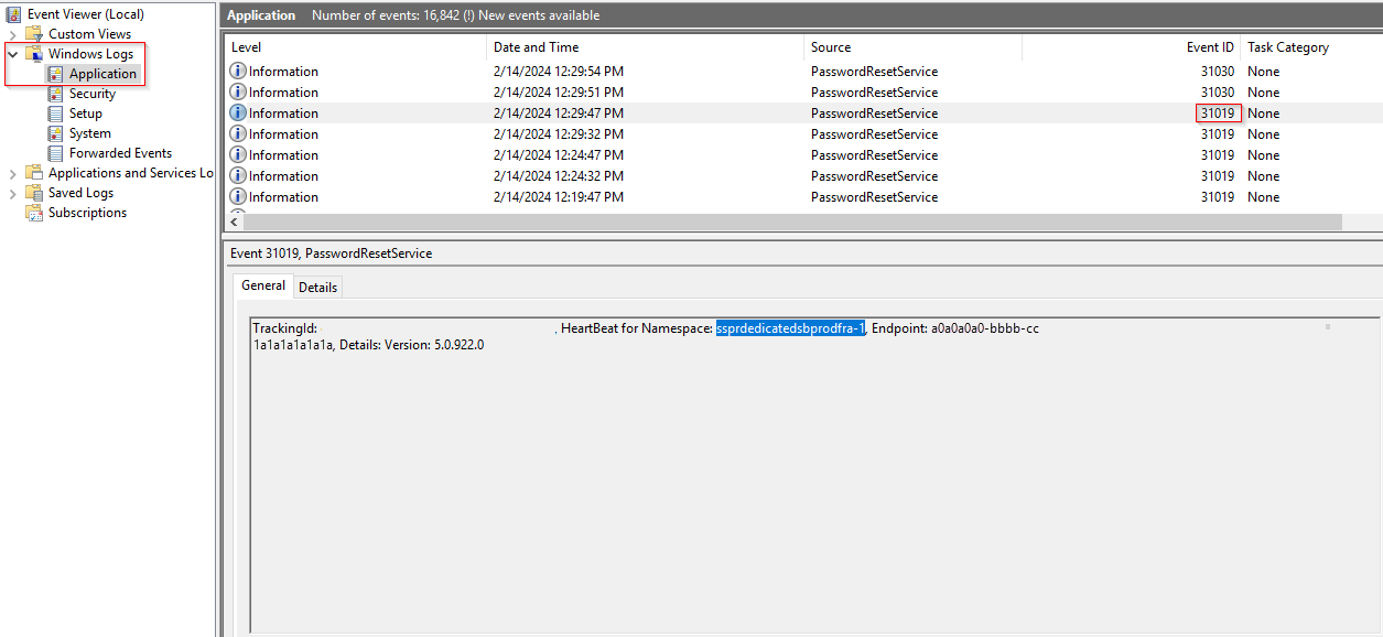 排查密码写回问题时,最佳做法是在 Microsoft Entra Connect 计算机上检查应用程序事件日志。 此事件日志包含来自密码写回的两个源的事件。 PasswordResetService 源描述与密码写回操作相关的操作和问题。 ADSync 源描述与在 Active Directory 域服务环境中设置密码相关的操作和问题。