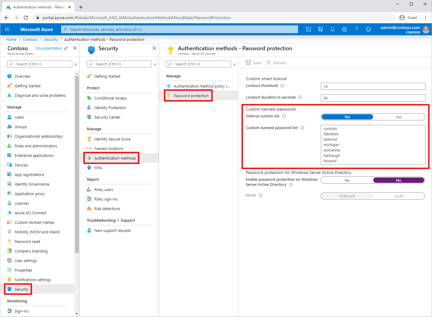 浏览到 Entra ID>身份验证方法,然后浏览 密码保护。