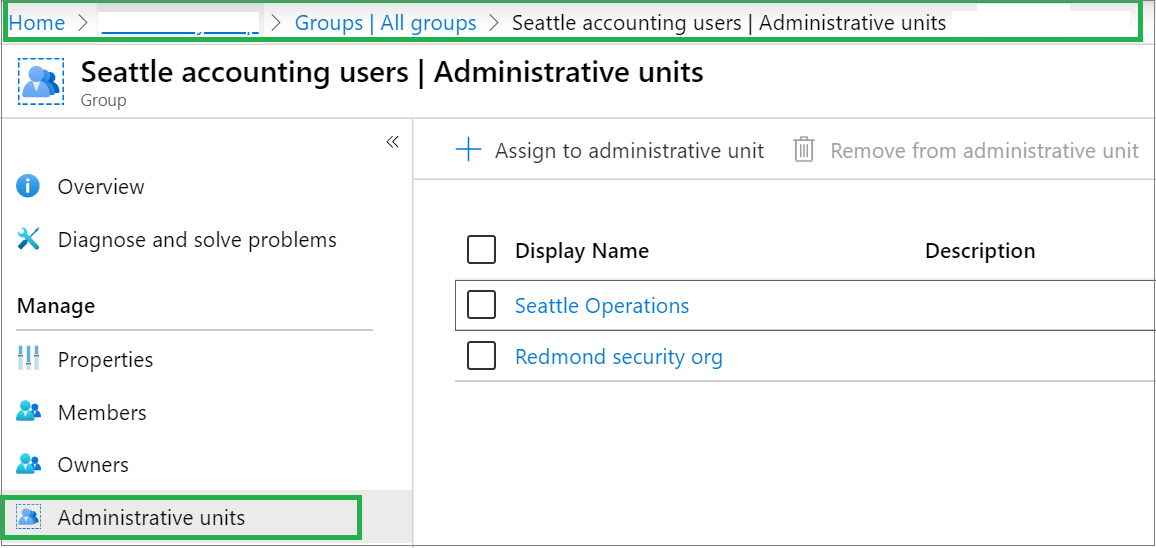 选择 管理单元,列出用户、组或设备是成员的所有管理单元。