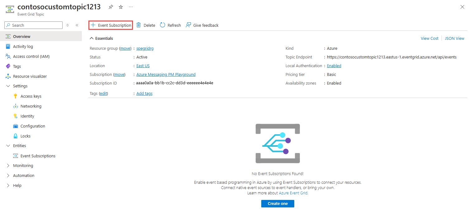 在自定义主题的“事件网格主题”页上的工具栏中,选择“+ 事件订阅”。