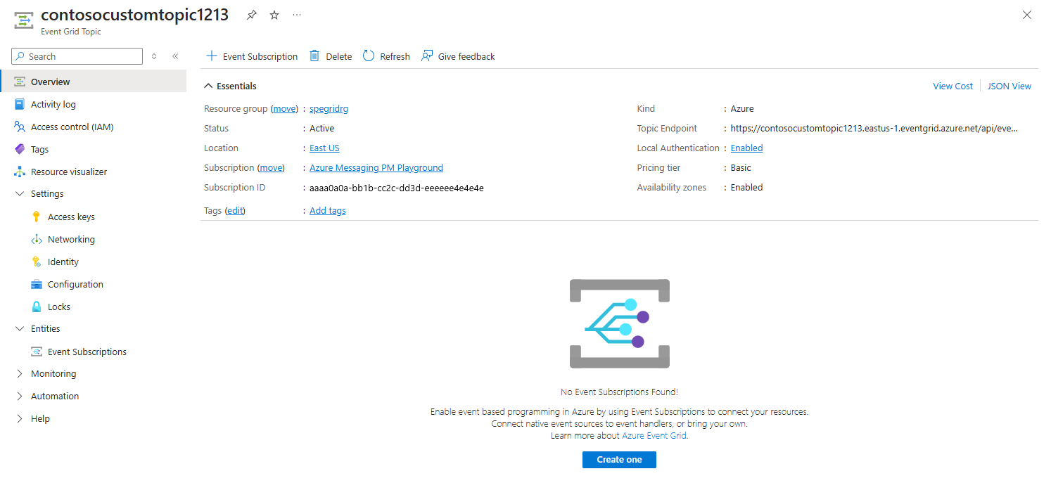 $resourceGroupName = "<resource group name>"事件网格主题名称: