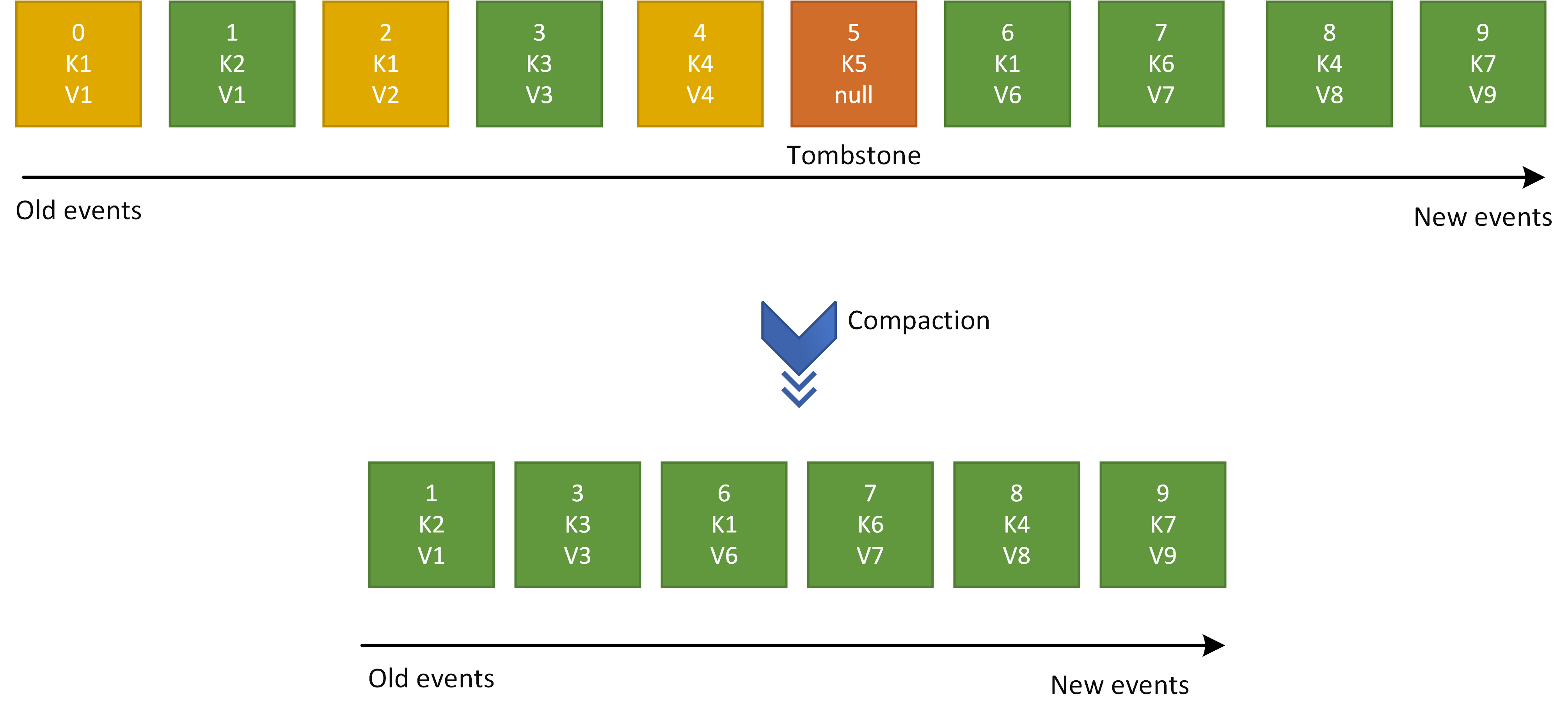 - 始终在键和分区级别保持消息的顺序。 压缩作业不会改变消息的顺序,而只会丢弃相同键的旧事件。
