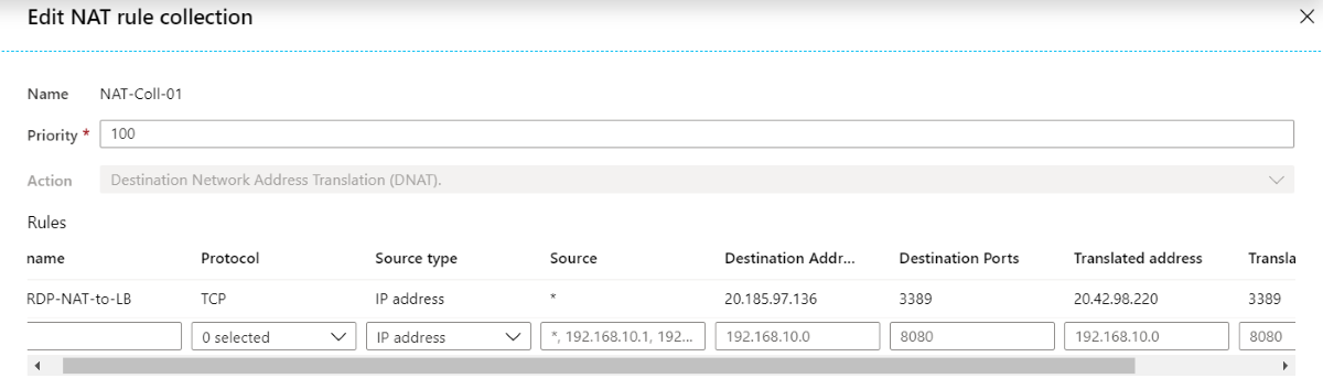例如,在负载均衡虚拟机所在的后端子网上创建 NSG。 允许来自防火墙的公共 IP 地址和端口的传入流量。 如果 NAT 网关与 Azure 防火墙子网相关联,则允许来自 NAT 网关的公共 IP 地址和端口的传入流量。