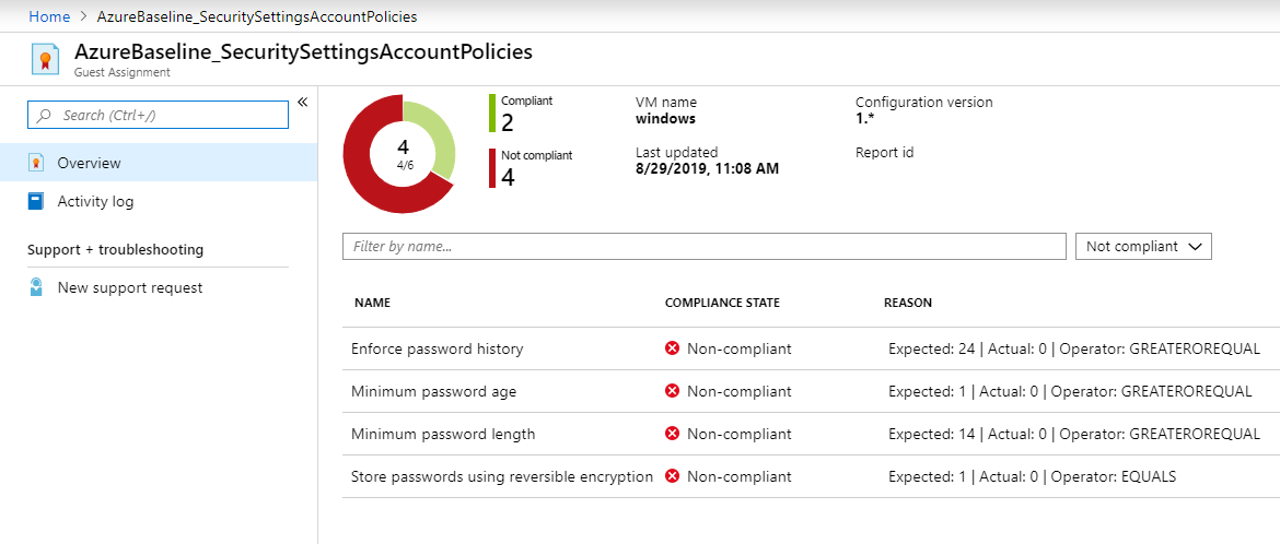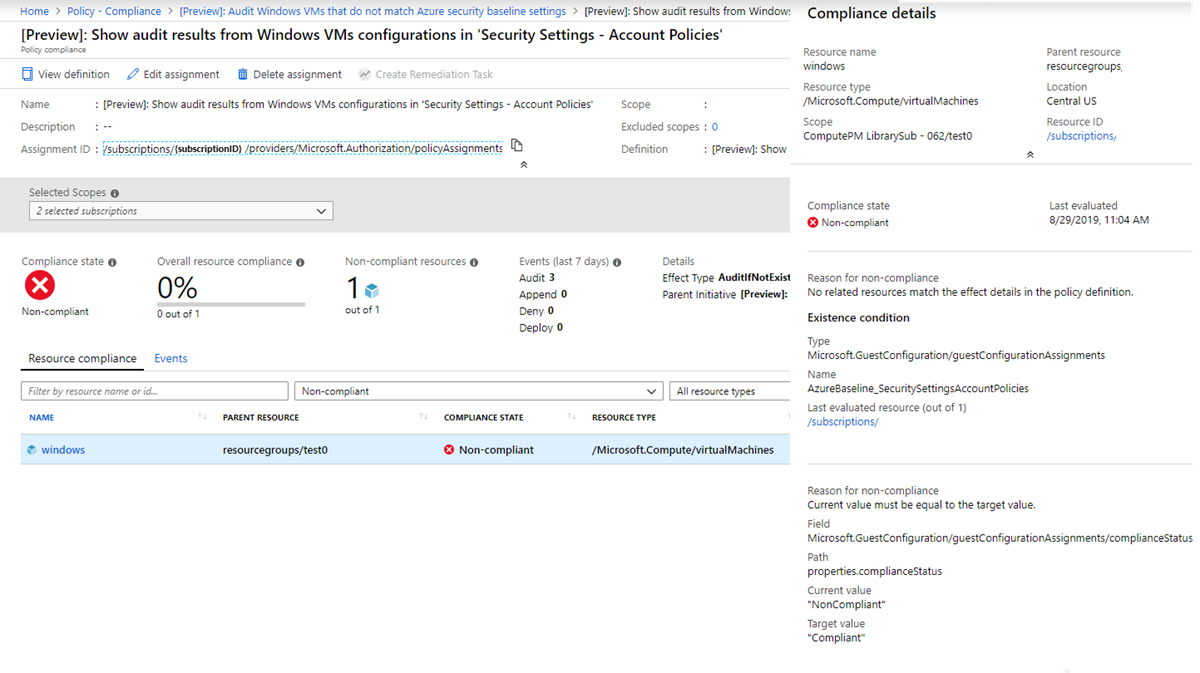 - 上次评估当前策略分配时的合规性状态和时间戳。