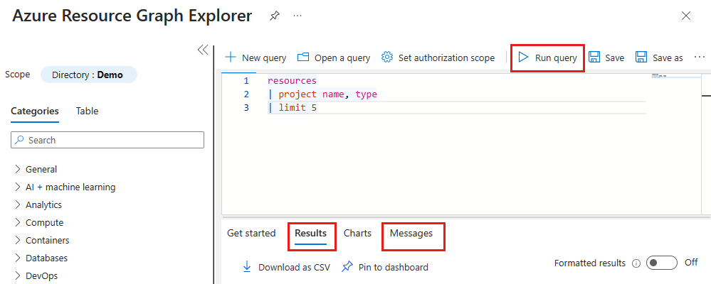 使用 Azure Resource Graph Explorer 从 Azure 门户运行查询。