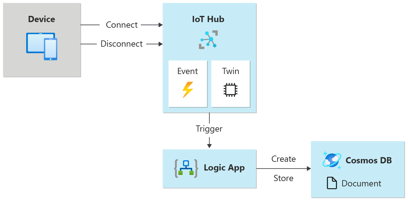 逻辑应用将连接或断开连接事件记录到 Cosmos DB 上的新文档中