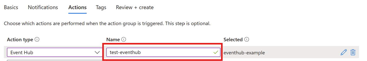 为操作组选择“操作类型”。 在这个例子中,我们创建一个 Event Hubs 操作。 选择“事件中心”。