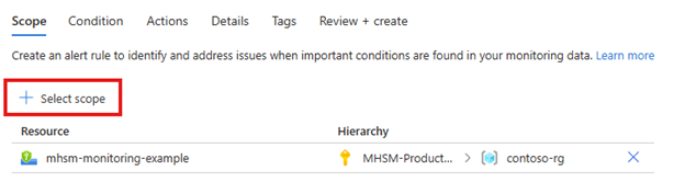 选择警报规则的作用域。 您可以选择单个 HSM 或多个 HSM。