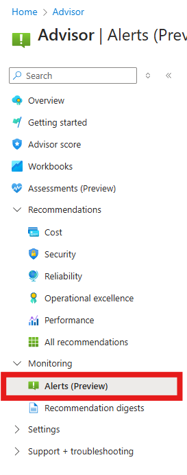 示例:配置 Azure 顾问警报