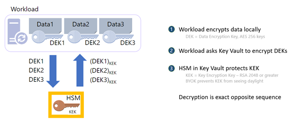 - 外部 HSM:有几个客户曾经咨询过我们,在 Azure 云的外部有哪种 HSM 选项可将数据和密钥与第三方云中或本地的外部 HSM 相隔离。 Azure 外部的第三方 HSM 看似能够让客户更大程度地控制密钥,但它也会带来一些问题,例如导致性能问题的延迟、第三方 HSM 的问题导致 SLA 问题,以及维护和培训成本。 此外,第三方 HSM 无法使用软删除和清除保护等 Azure 关键功能。 我们会继续与客户一起评估这种技术选项,帮助他们驾驭复杂的安全与合规环境。
