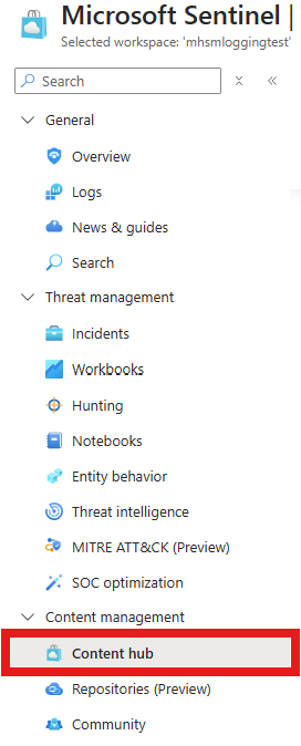 导航到 Microsoft Sentinel 工作区,在“内容管理”下,选择“内容中心”。