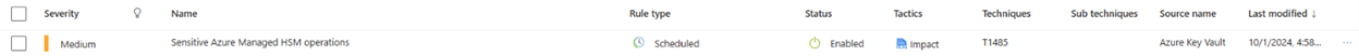 KeyDelete操作是由名为“敏感 Azure 托管 HSM 操作”的分析规则搜索的敏感操作之一。