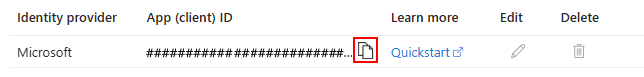 需要查找关联的企业应用程序并复制其 应用程序 ID。 你将使用此应用程序 ID,通过应用注册来为你的功能应用添加身份提供者。