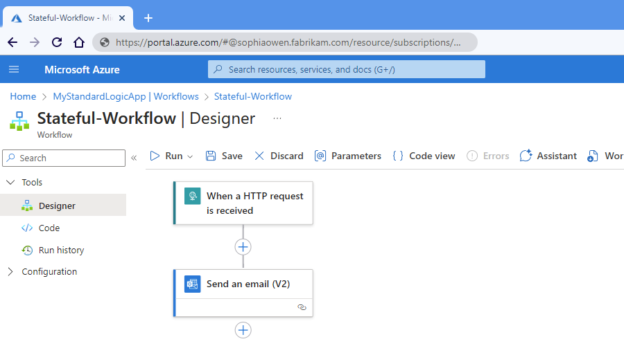GET https://fabrikam-workflows.chinacloudsites.cn:443/api/Fabrikam-Stateful-Workflow/triggers/manual/invoke?api-version=2020-05-01&sp=%2Ftriggers%2Fmanual%2Frun&sv=1.0&sig=xxxxxXXXXxxxxxXXXXxxxXXXXxxxxXXXX当触发了触发器时,示例工作流将运行,并发送类似于以下示例的电子邮件: